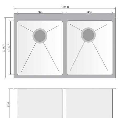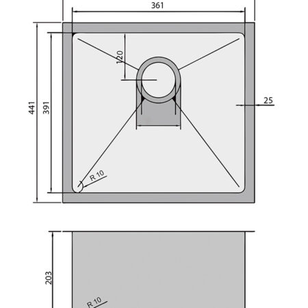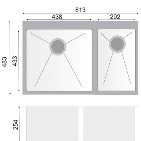 Depth: 254 mm / 10”- 304 brushed finish stainless steel 18 gauge