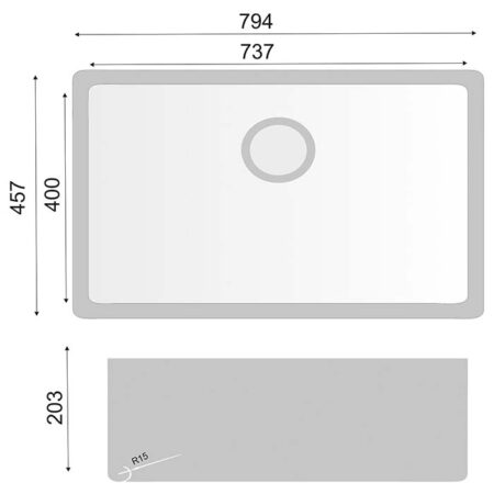 Depth: 203 mm / 8”- 304 brushed finish stainless steel 18 gauge