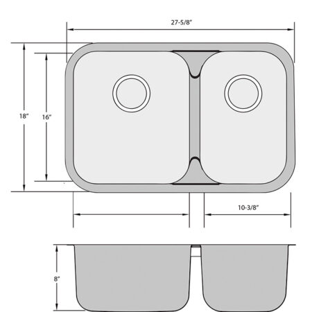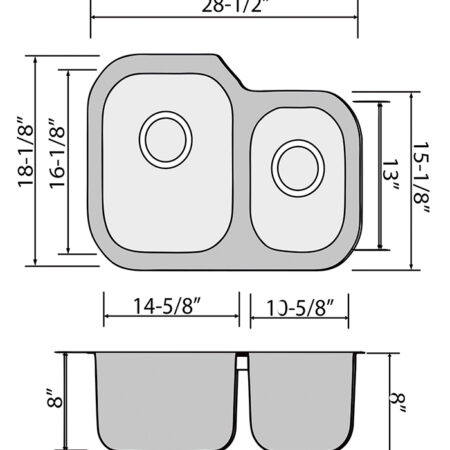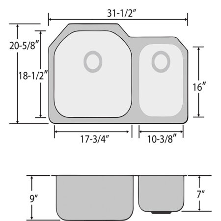 Depth: Left 9″ Right 7″- 304 brushed finish stainless steel 18 gauge