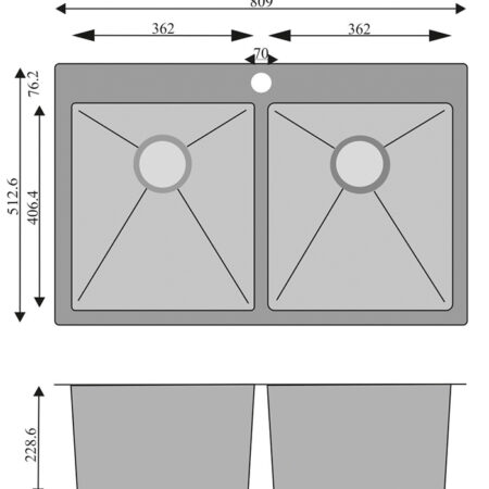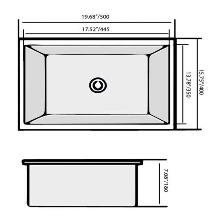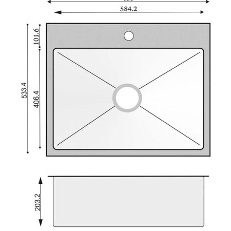 Depth: 203.2 mm / 8”- 304 brushed finish stainless steel 18 gauge