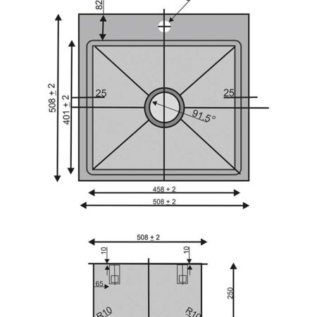 Depth: 250 mm / 10″- 304 brushed finish stainless steel 18 gauge